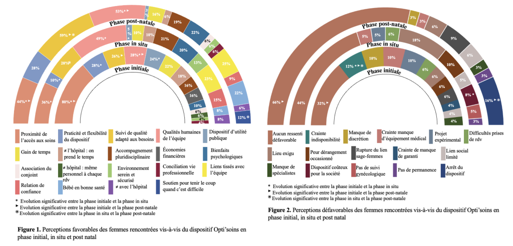 Cartographie des perceptions favorables et défavorables des femmes enceintes vis à vis du dispositif Opti’soins en phase 1, 2 et 3.