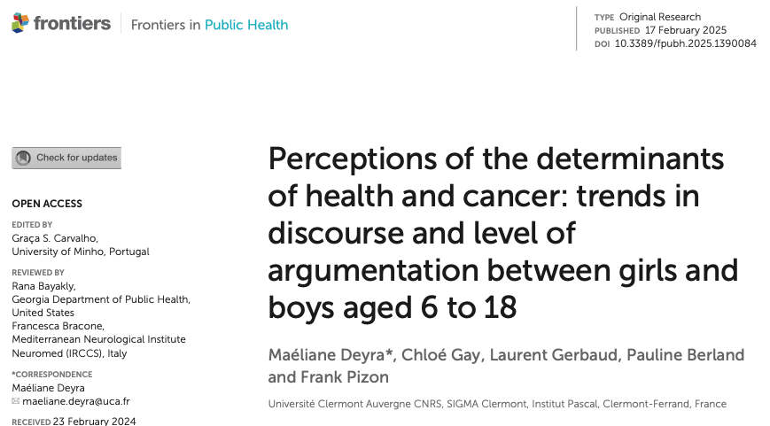 Il s’agit de la première modélisation des déterminants de la santé et du cancer perçue par les enfants de 6 à 11 ans.